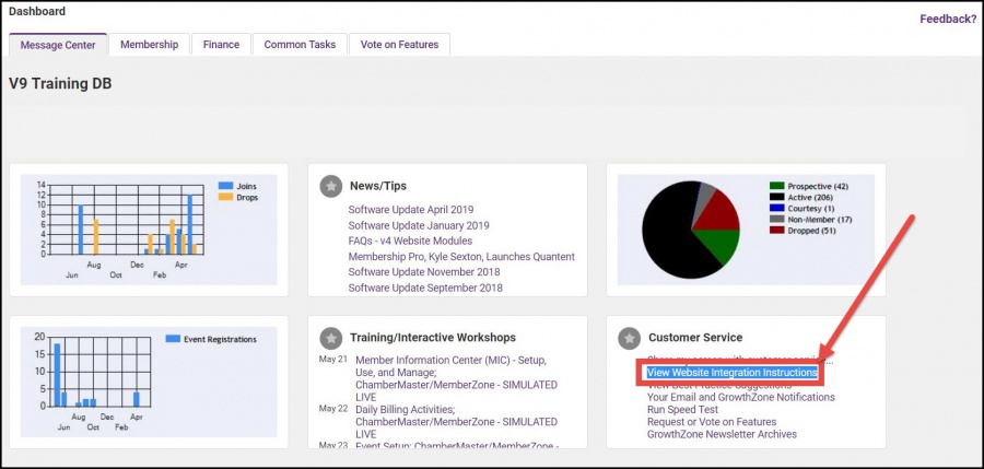 - Log into the customer’s ChamberMaster or MemberZone database and go to the Message Center tab of the Dashboard.