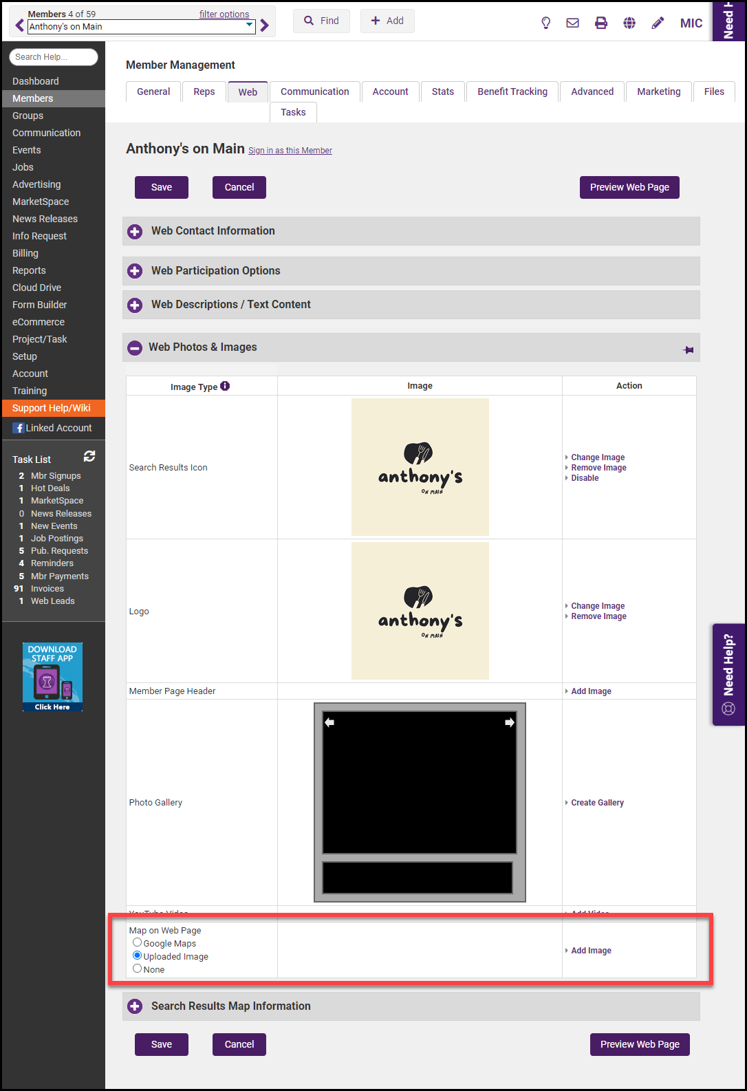 - On the member's Web tab, click Google Maps in the Web Photos & Images section.