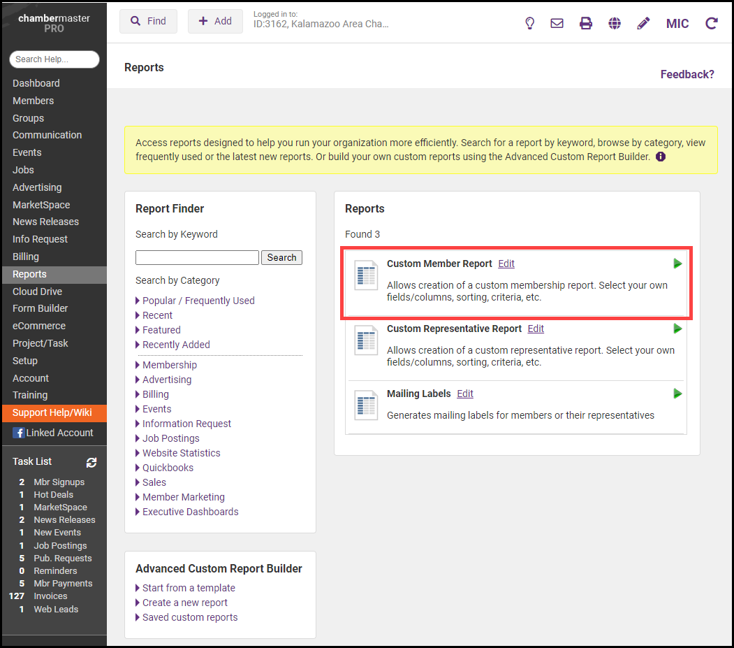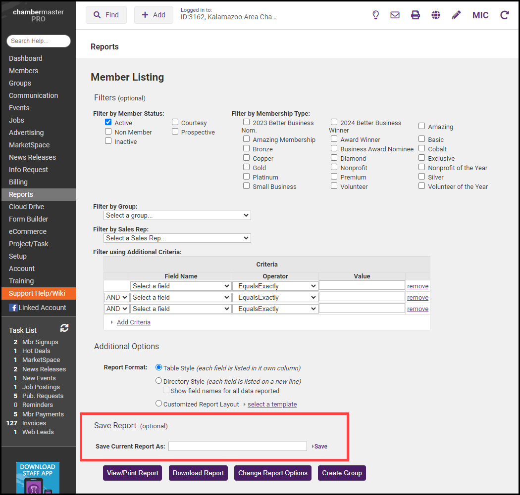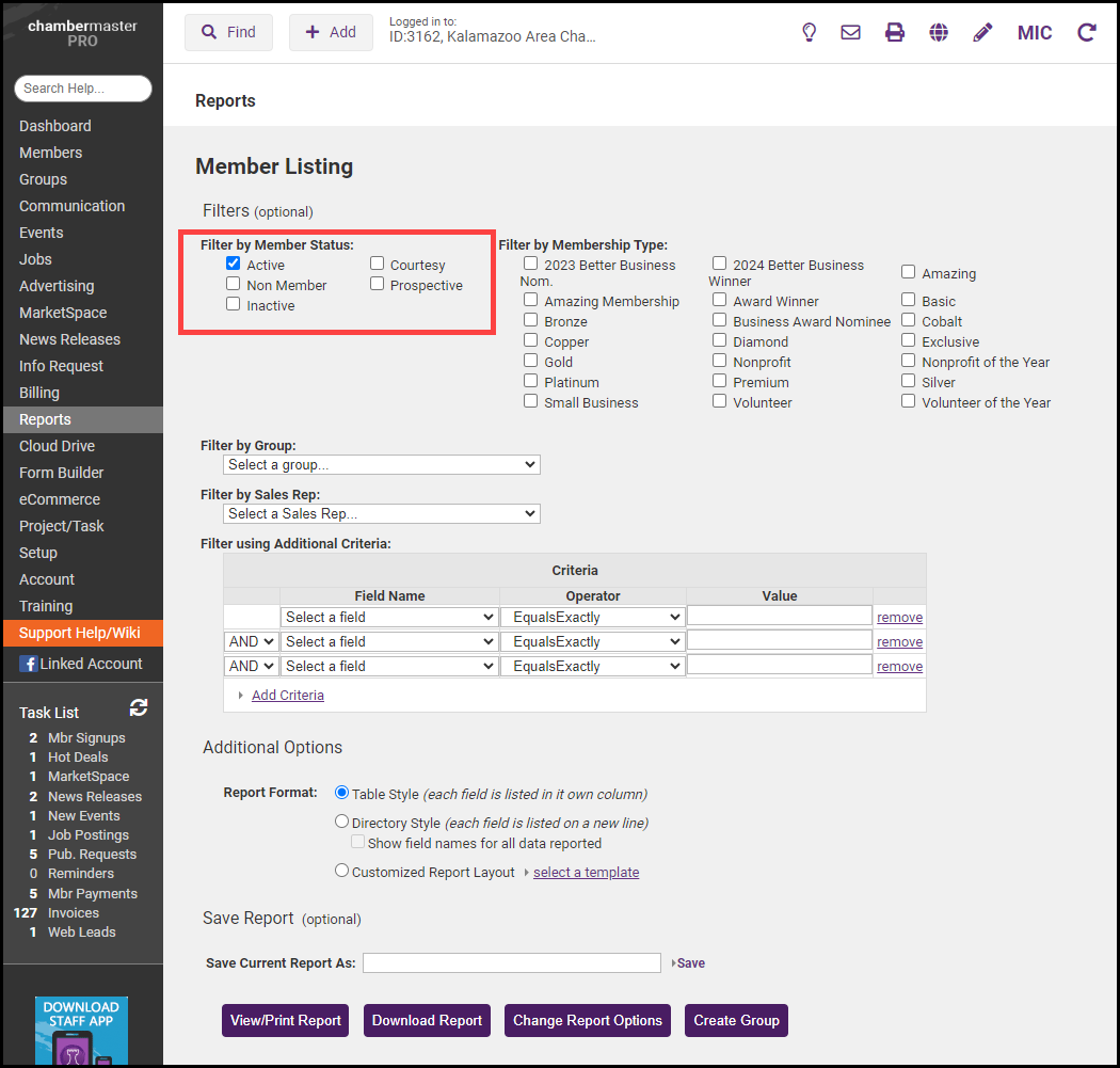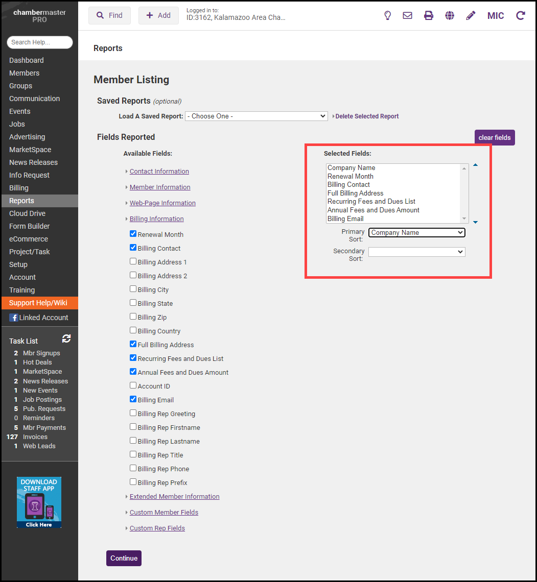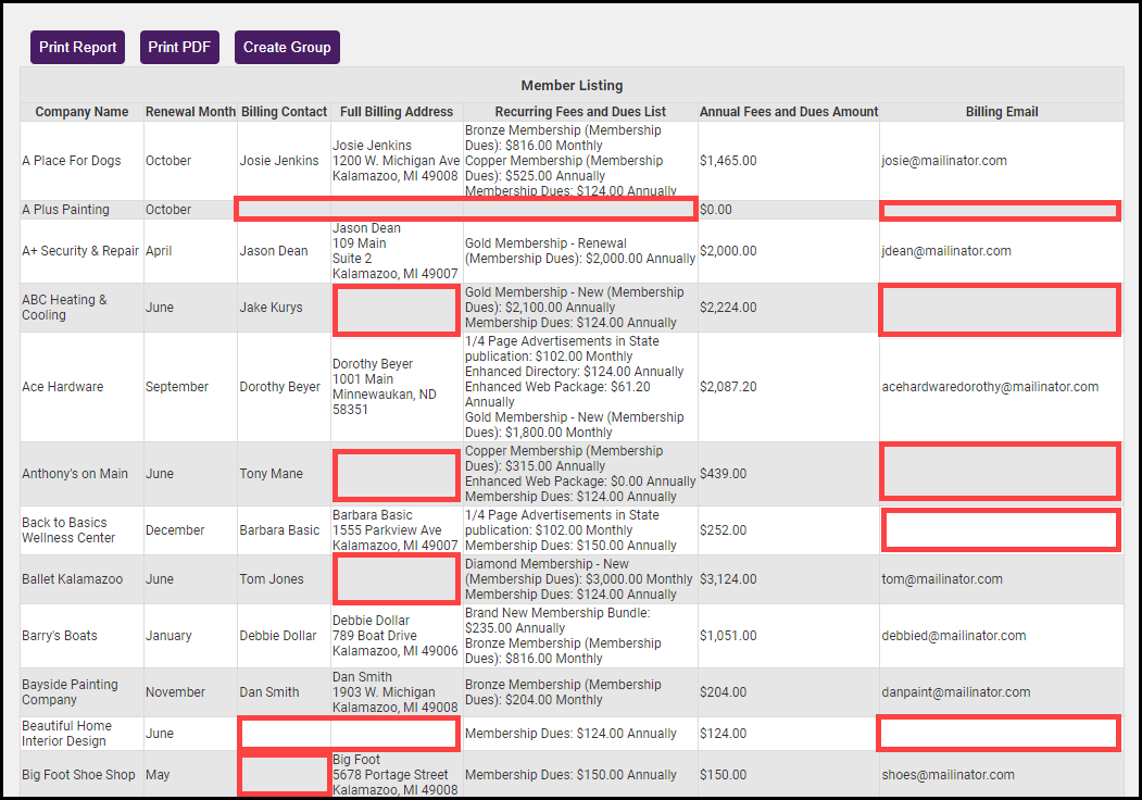 Use the Custom Member Report to create a report called the Billing Precheck Report. It's recommended you run this report before your invoice batch billing to identify any missing billing information (like Billing Contacts, addresses, or fees). This proactive step helps maintain billing accuracy and ensures all Active members are appropriately invoiced.