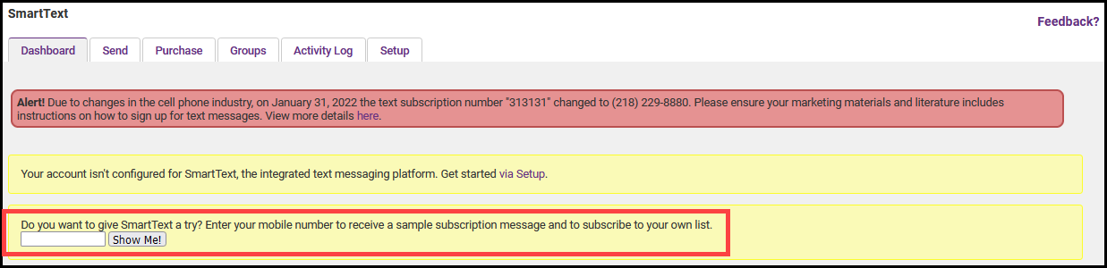 Before going live with advertising your group texting ability, you will want to test the functionality of SmartText on your own.