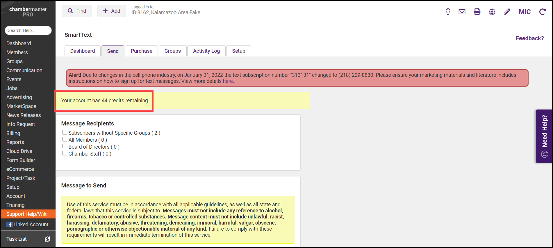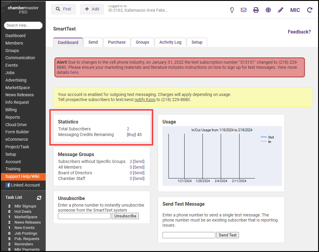 You will also notice if you click on the Send tab, your phone number now belongs to the subscriber list Subscribers without Specific Groups.