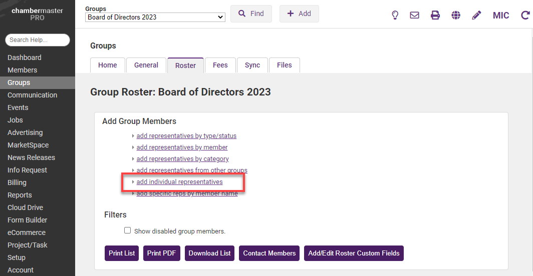- Click the group(s) from which you wish to select the representative you wish to add to your group roster.