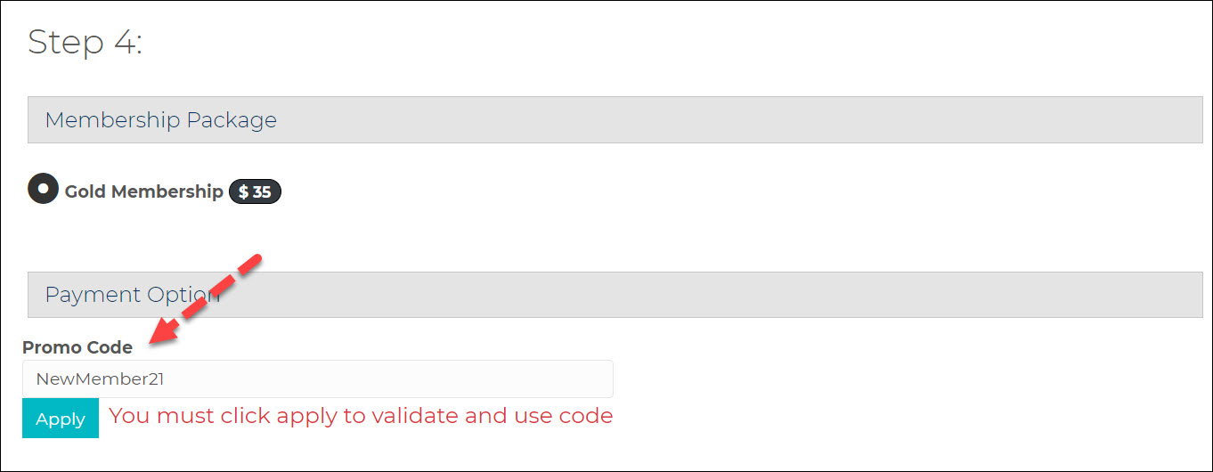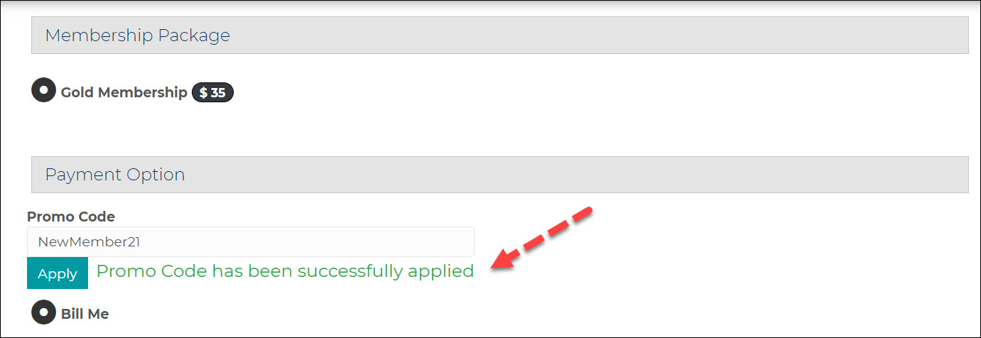 - From the online membership application, the applicant chooses a membership package tied to a Promo Code.