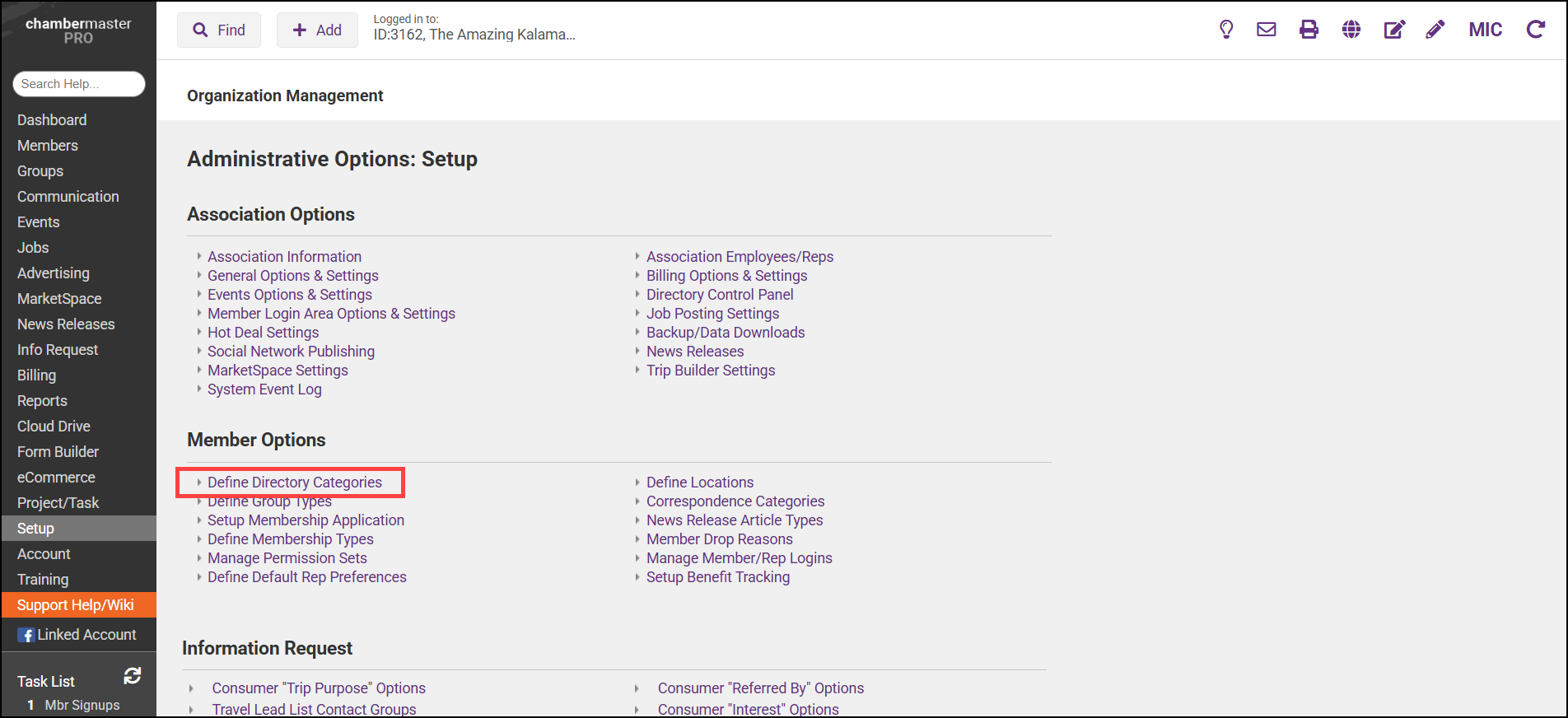 Click Define Directory Categories in the Member Options section.