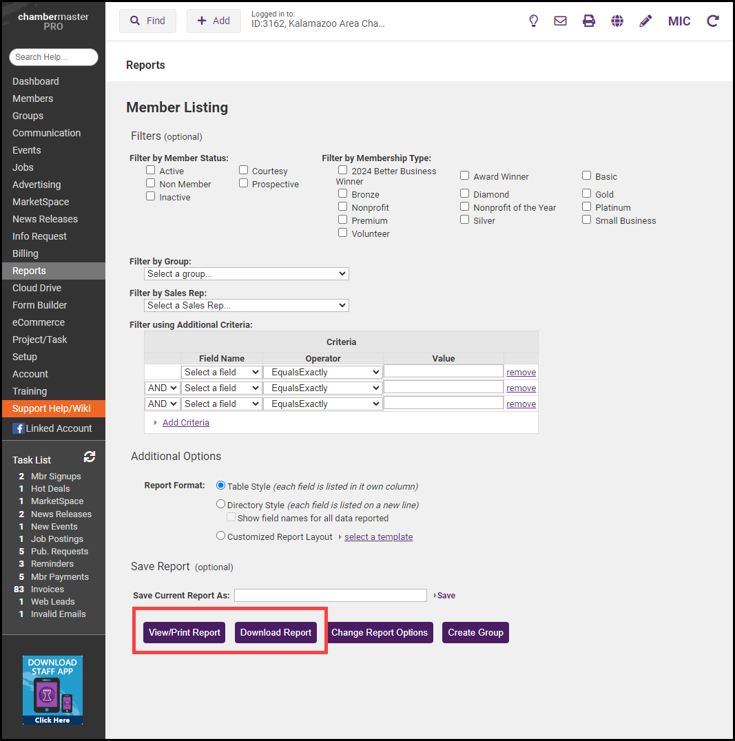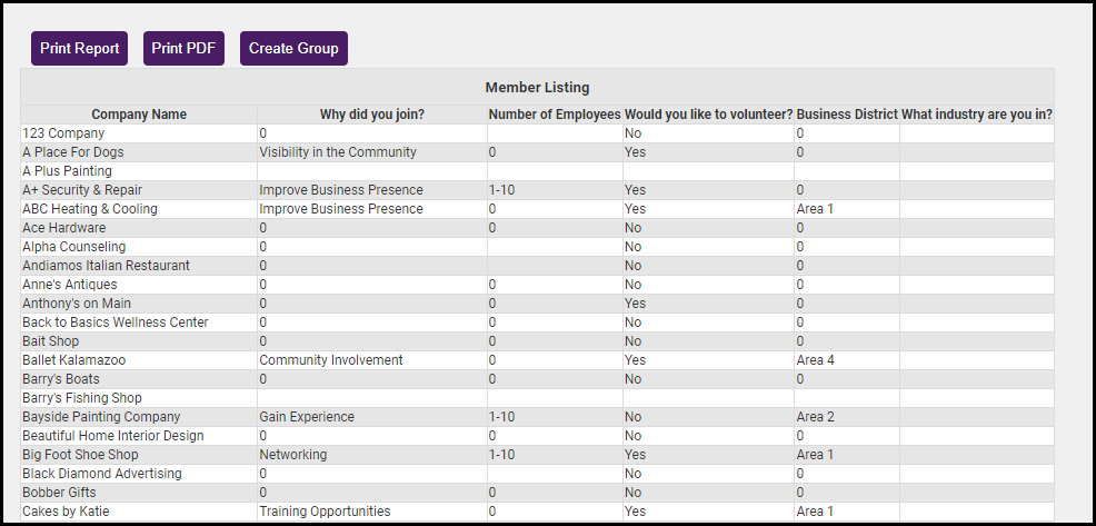 On the Member Listing screen, select identifying information like Company Name from the Available Fields.