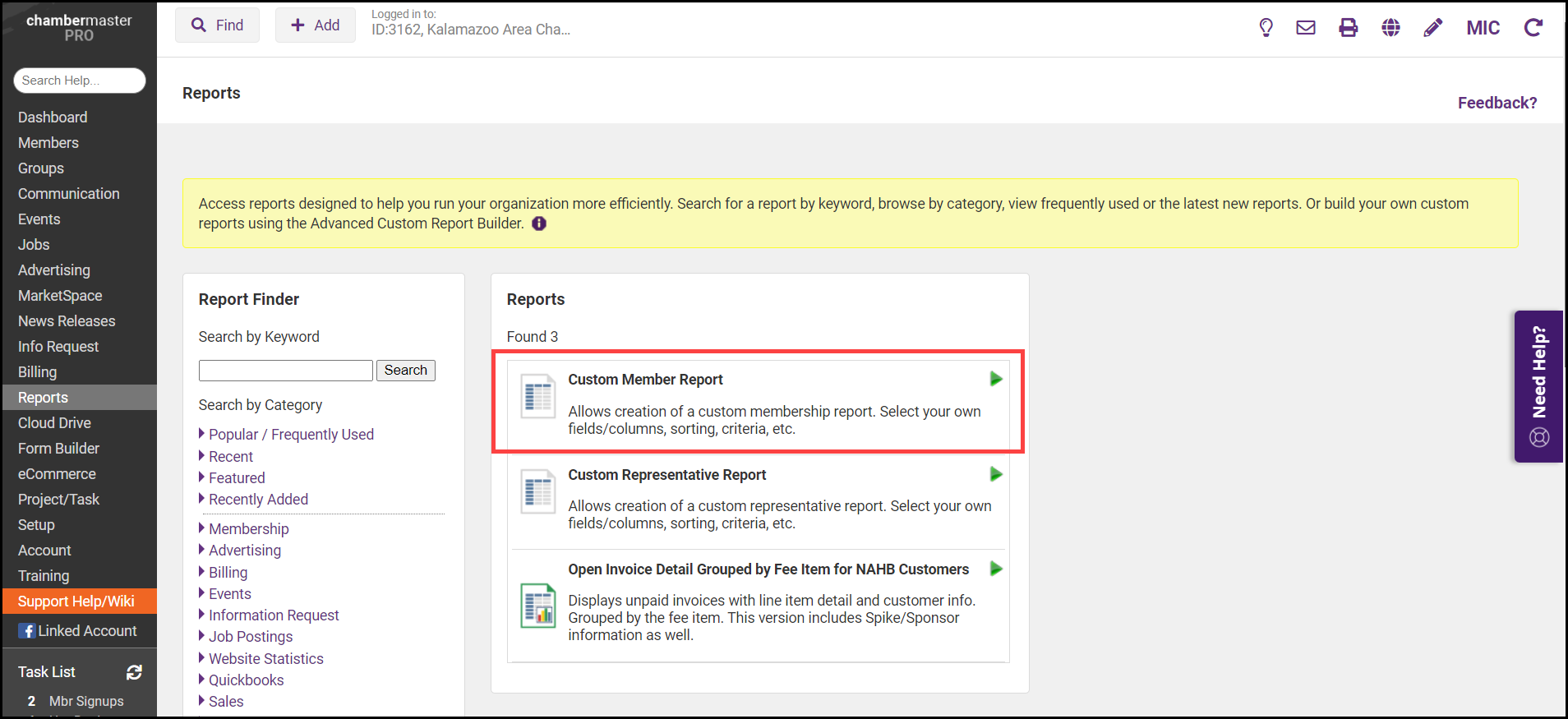 - Select the Custom Member Report.