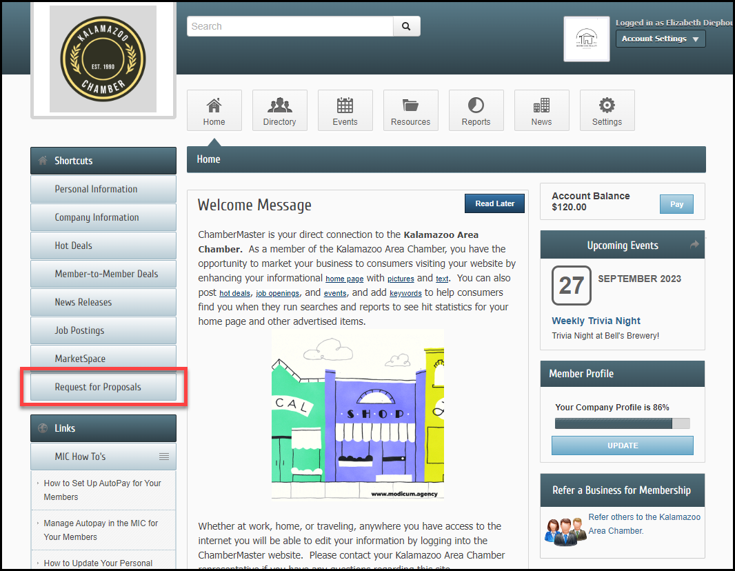 Yes. If you provide your member a link to your /login page, append the destination string ?dest=rfp to the login link. This will bring the member directly to the list of RFPs after successful login without having to select any menu choices at all. Available only if logging into Member Information Center v4. Example: http://business.greenvalleychamber.com/login?dest=rfp.