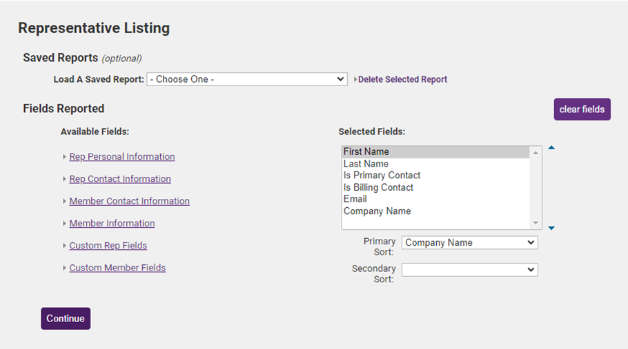 - For Example: If you wish to sort report output by the last name. If no selection is made the report will be sorted by the first item in the Selected Fields.