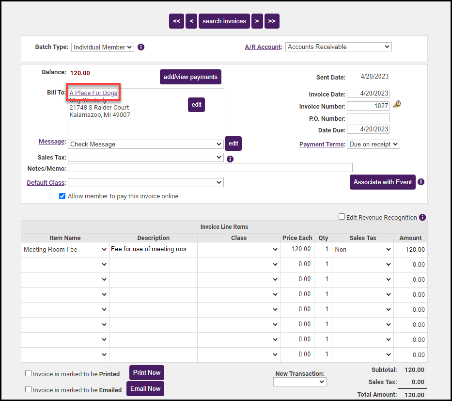 - Click on the company name in the Bill To box.