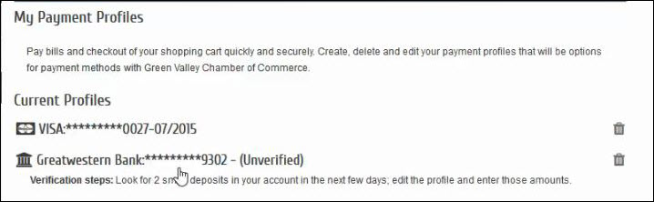 - When adding a bank account as a Payment Profile, your new bank account will be listed as Un-verified on the Payment Profile menu.