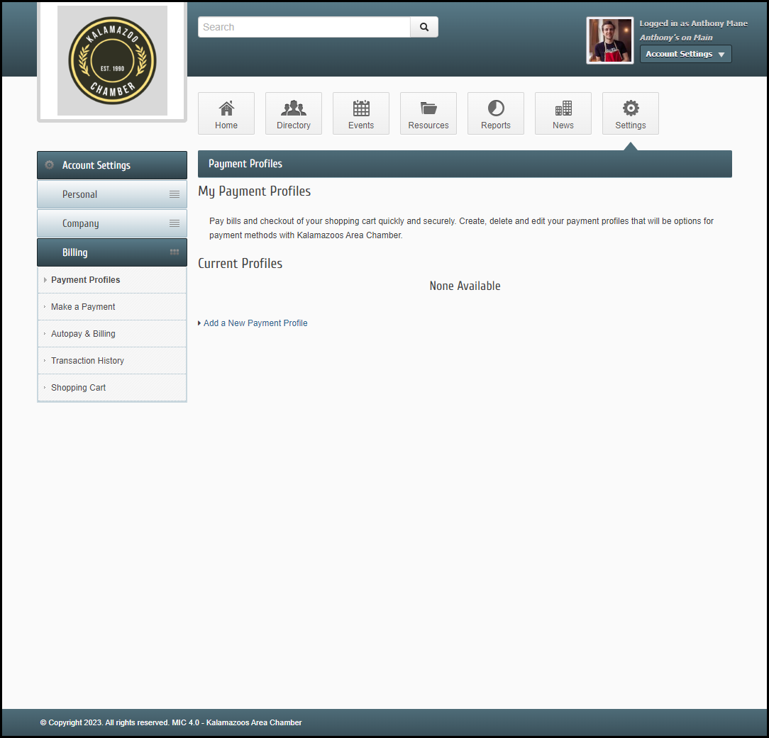 Select Add/Manage Payment Profiles to view Payment Profiles. Selecting Manage Autopay will also open the Payment Profiles to allow for editing.