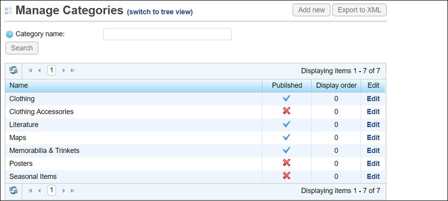 NOTE: If you wish to remove categories from your store, you may deselect the “Published” check mark on any category which turns off the online display of that category. However, unless the item (product variant) itself also had the “Published” check mark cleared, products in the category would continue to display when found through the Search command or the New Products list. |