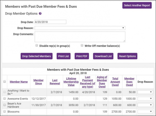 - Click Past Due Members / Mass Drop in the executive section.