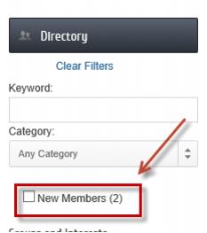 New Members filter displays a checkbox where those searching would see those with a Join Date of today or 30 days prior.