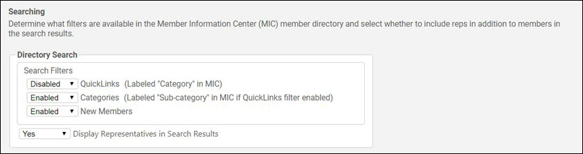 Selecting Yes for Display Representatives in Search Results will display only members in your MIC Directory instead of both members and rep names. If set to No, Rep names and information may still be viewed when accessing the member details page but now the rep names and member names don't have to mingle in the directory.