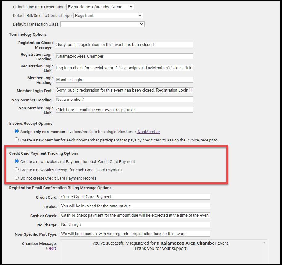 Credit Card Payment Tracking Options: Set defaults for credit card payment tracking and invoice/receipt options for non-members.