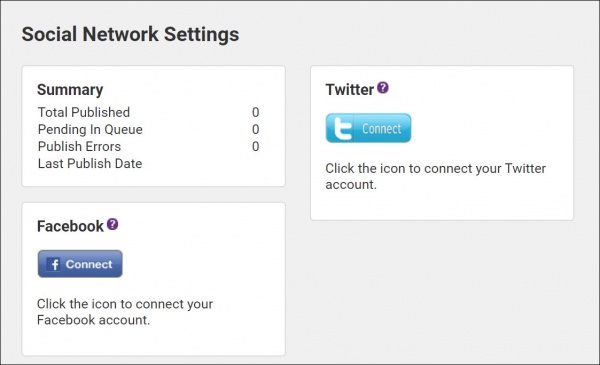 - During the publishing window, you define in the Settings area. Once every 15 minutes, the software will take an item at random from the queue (if any) and publish it to each of the social networks you have set up. The post will contain the title and description text you created with the item as well as a link to the item's page on your site.