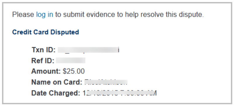 An email notification is sent to the address listed in the Payment Processing Reports/Management Tools that indicates the details of the dispute and gives directions on how to resolve the dispute.