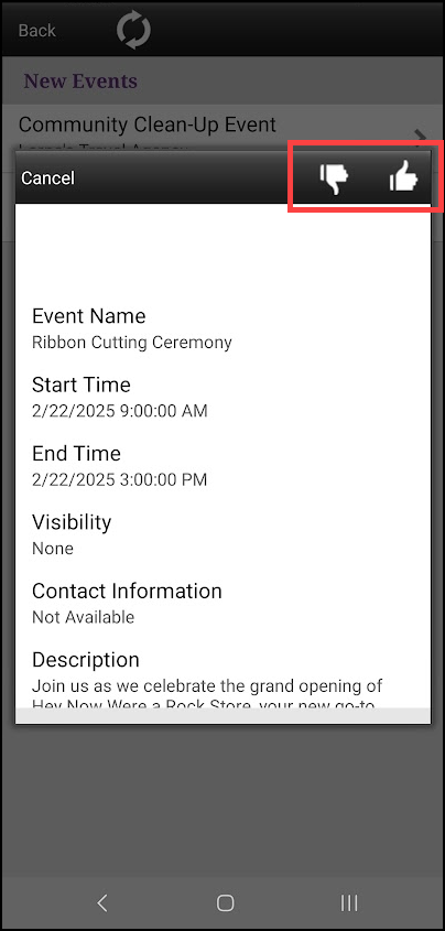 Approve or decline the event using the thumb-up or thumb-down icon.