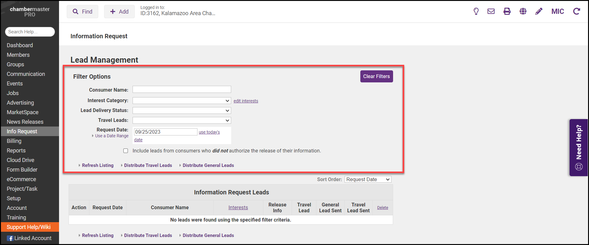 - Select Lead Management in the Information Request area.