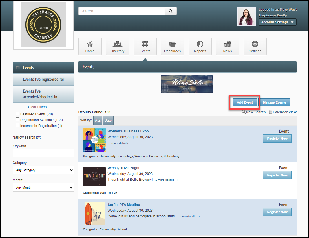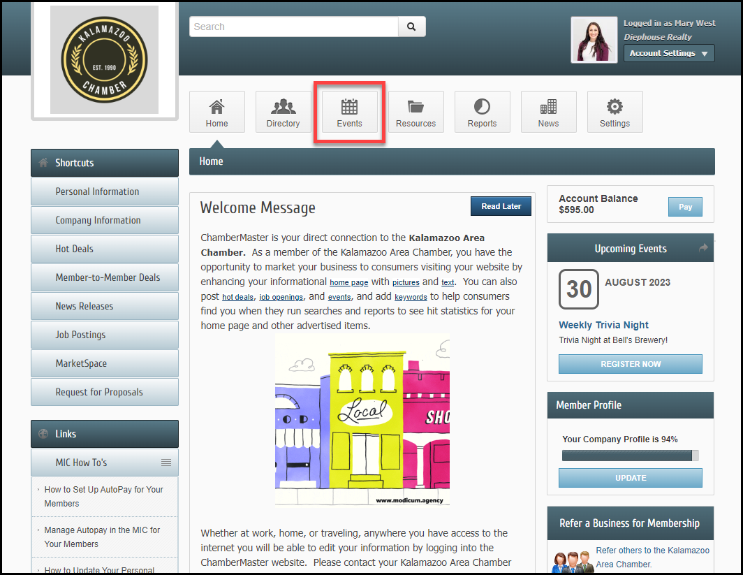 In the Member Information Center (MIC), select Events in the top menu.