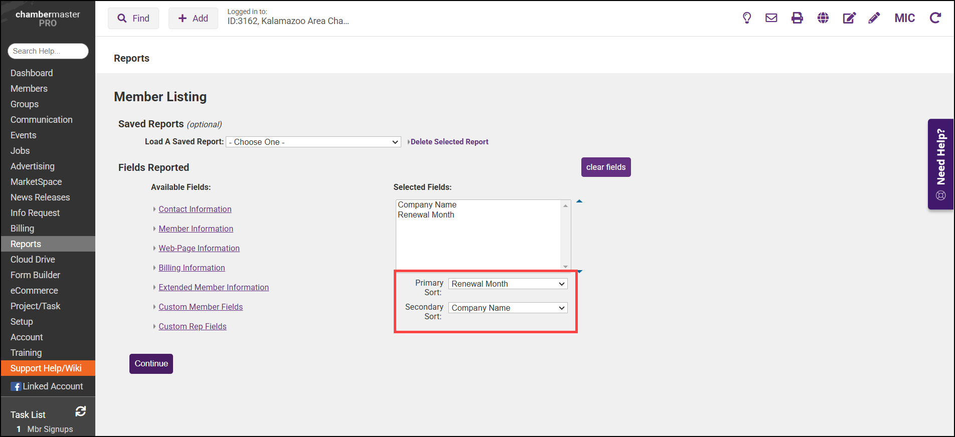 - Set the Primary Sort to Renewal Month and the Secondary Sort to Company Name to ensure the report groups members within the same Renewal Month.