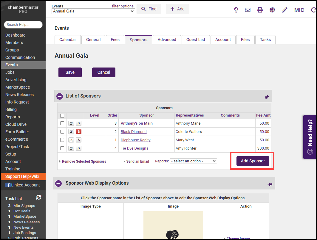 - Select the Add Sponsor button.