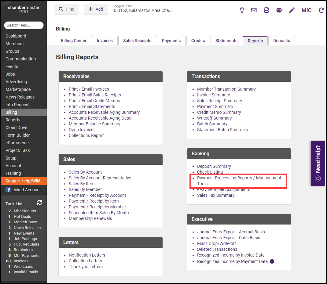 Click Payment Processing Reports / Management Tools in the Banking section.