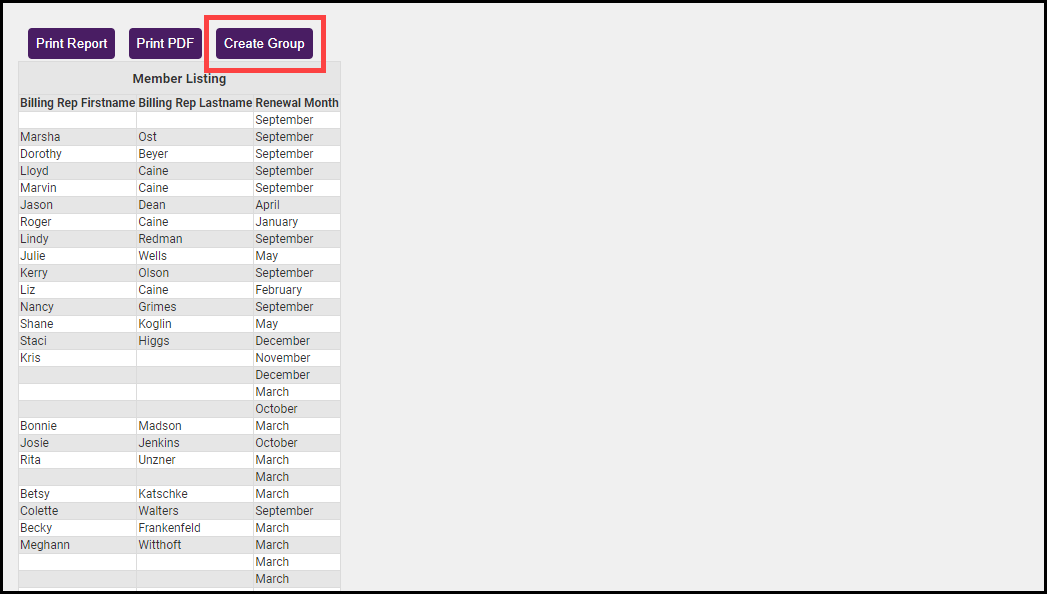 Optional: Click Create Group to create a group from the members that are displayed on this report.