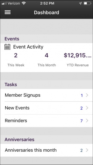 - In the Tasks section of the Dashboard, Member Signups will be displayed with a number if there are membership applications requiring approval.