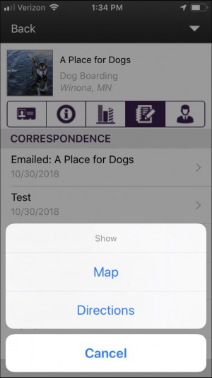 - Click Map to view the member's location on a map OR click Directions to get directions to the location. NOTE: The App will use whichever mapping application you have installed on your device.