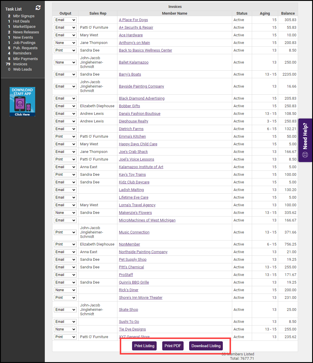 Click Refresh Listing. To save the report, select the Print Listing, Print PDF, or Download Listing buttons.