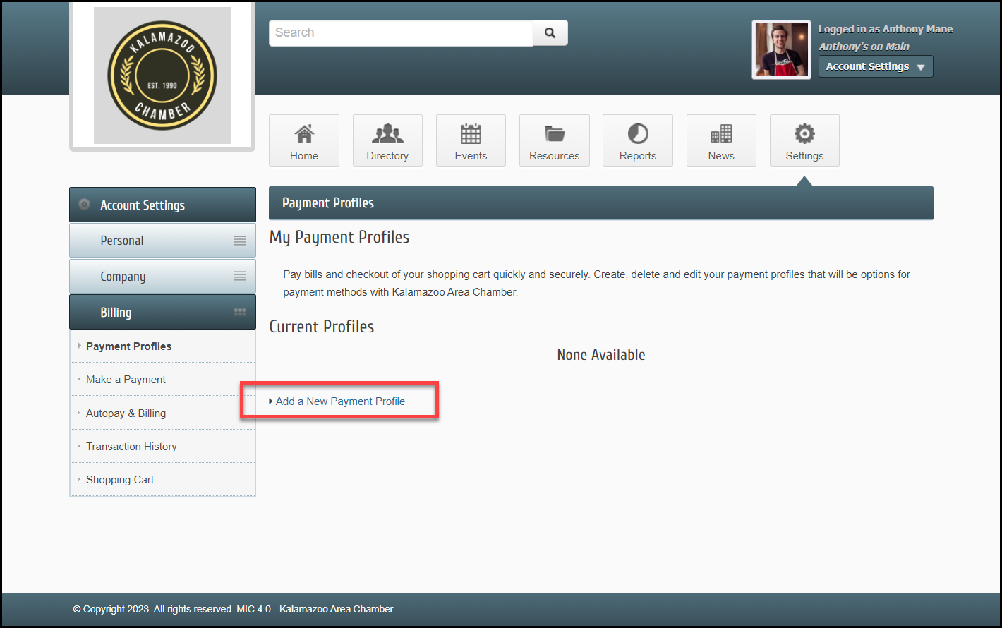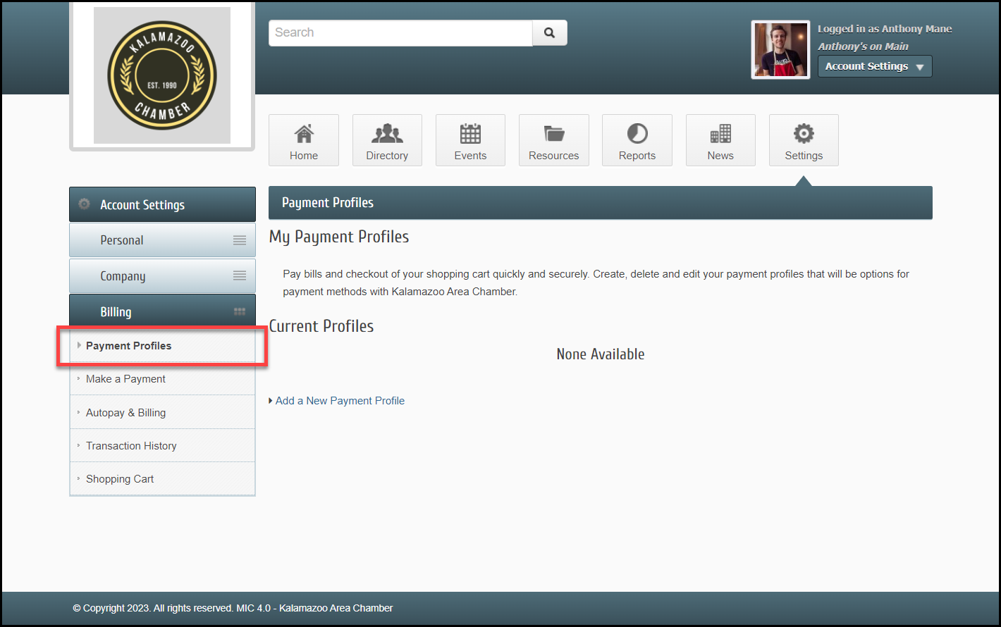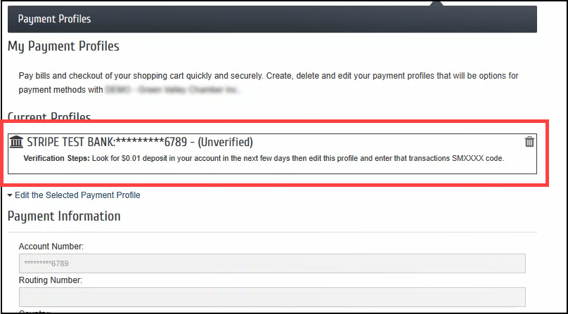 Within the MIC, members have the ability to see their stored payment profiles and change those payment profiles if necessary, including deleting a payment profile.