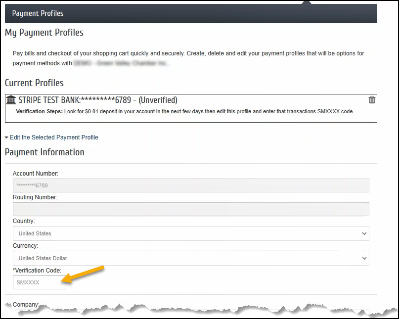 With GrowthZone Pay, your members will be able to store credit cards in the Member Information Center (MIC). They can then notify you that they wish to use the stored payment profile for recurring fees. Click here to see how to store a payment profile in the MIC.