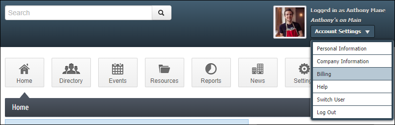 - Click Billing.
