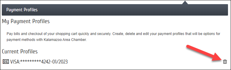 - To delete a Payment Profile, click the trashcan icon.