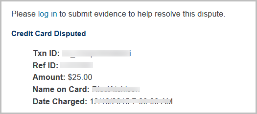 An email notification is sent to the address listed in the Payment Processing Reports / Management Tools that indicates the details of the dispute and gives directions on how to resolve the dispute.
