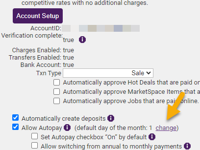 If you need to change the date that all of your Autopay accounts are charged, this can be set under Setup > Billing Control Panel.