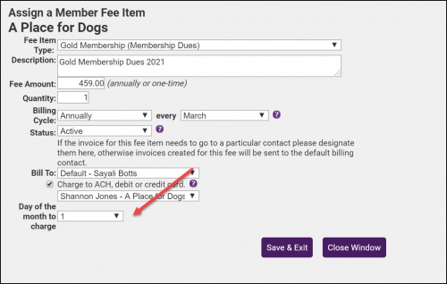 - Enter the new date in the Day of the month to charge field.