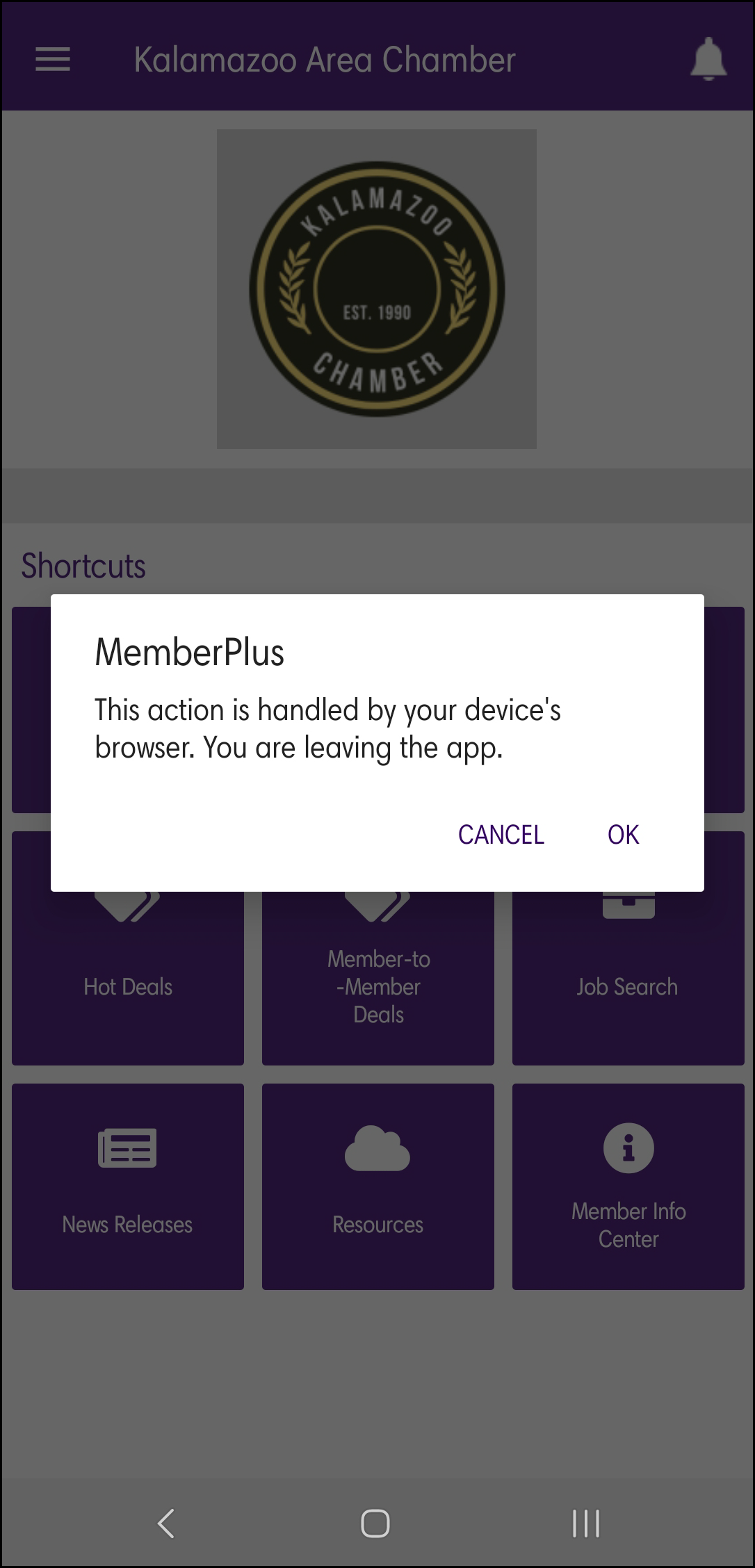 - In a pop-up window, you'll be notified you're leaving the MemberPlus App. Click OK. Your device will open the MIC.