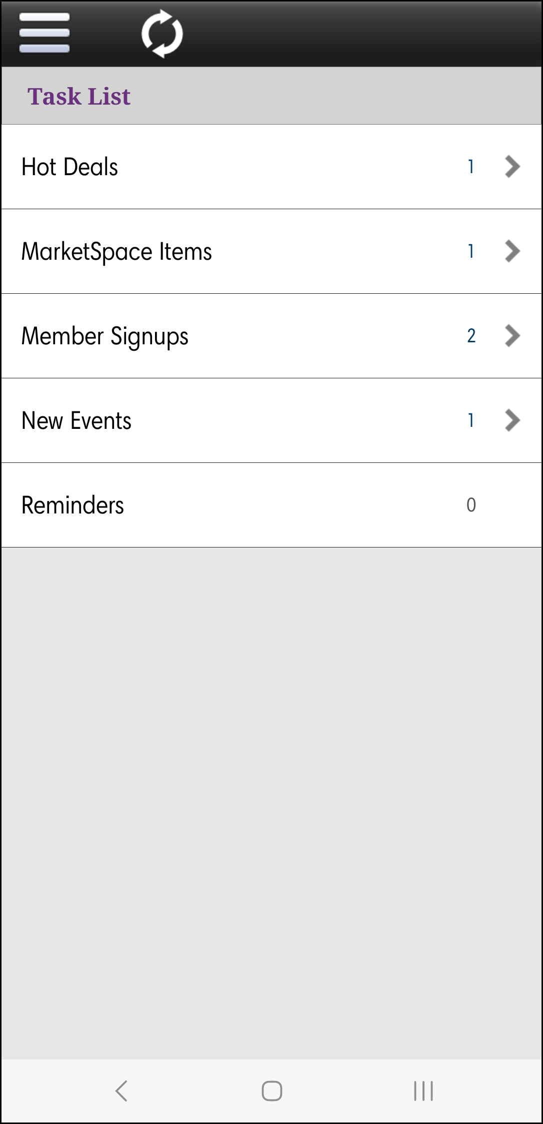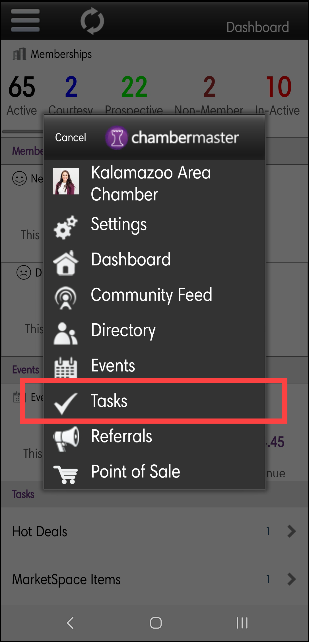 With the StaffApp, you can view and approve Hot Deals, view and approve MarketSpace Items, view and approve membership applications, view and approve events submitted by your members, and view your reminders.