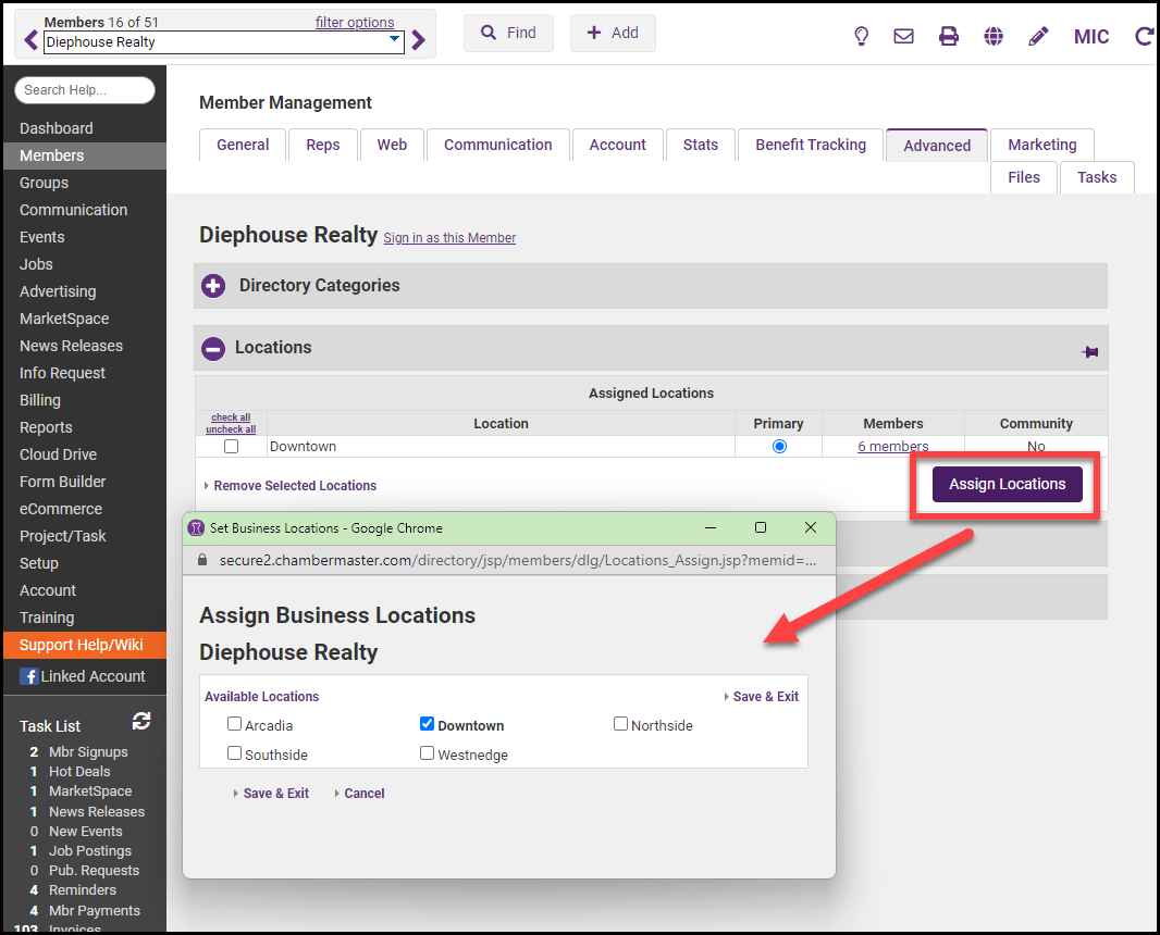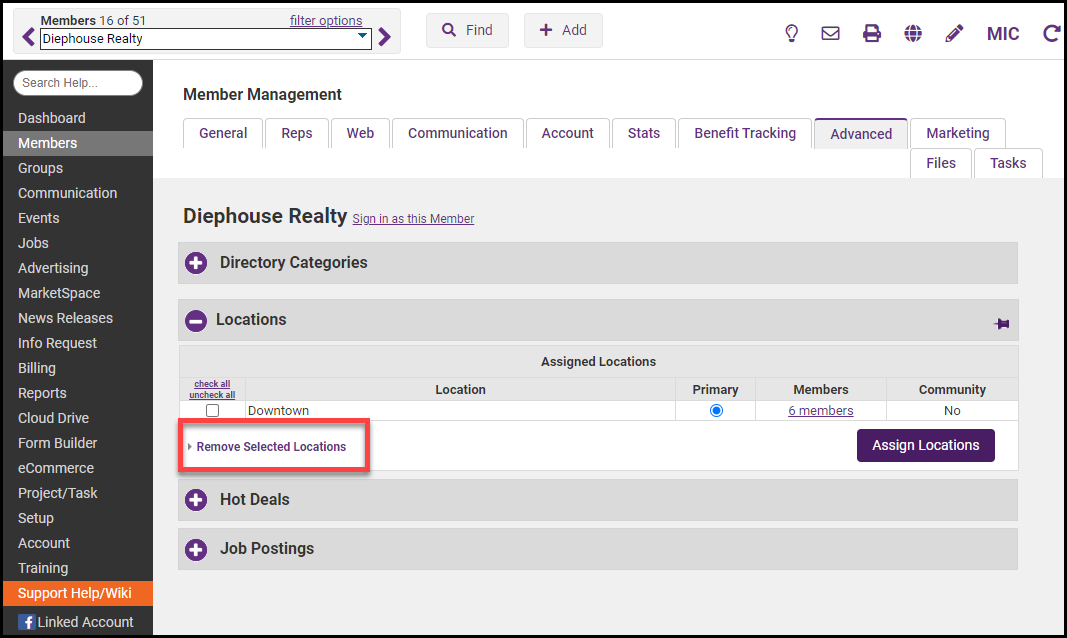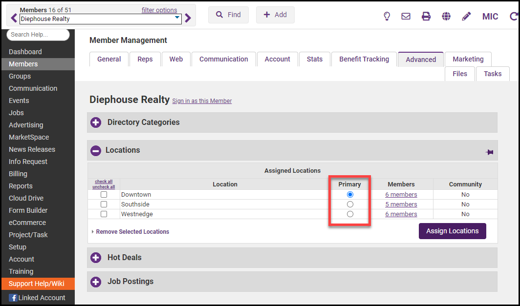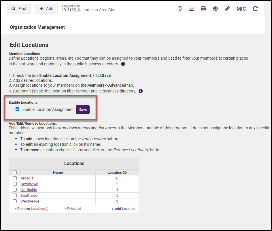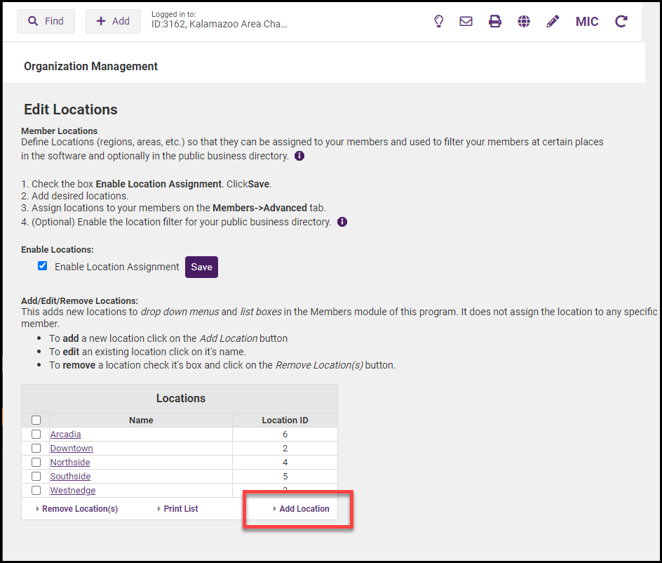 - Locations can then be assigned to members in their member records.