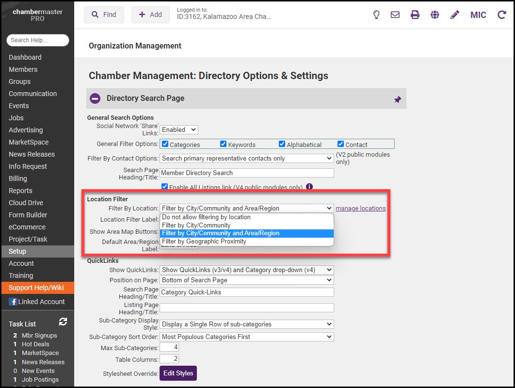 Turn on the ability to filter by location on your public Business Directory.