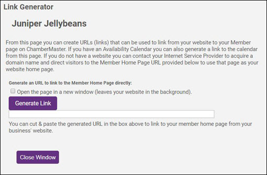 This function allows you to generate a URL to open this member's information page directly from your website.