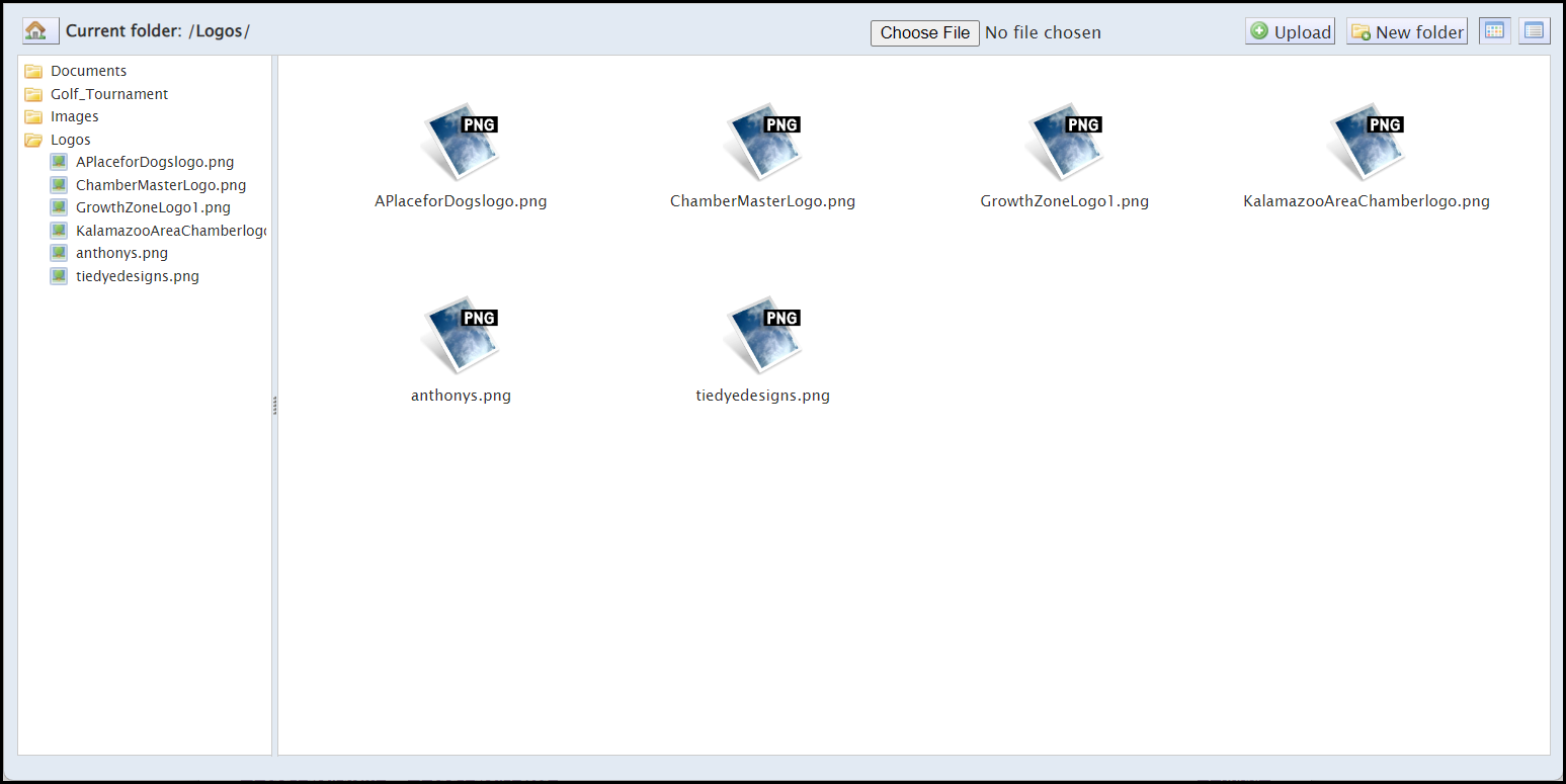 - Browse to find the desired file and click it to select. Or you may upload a new file to the ChamberMaster server by clicking Browse. If you choose to upload a new file to the secure ChamberMaster server, this file is also available to all chamber staff for inclusion in their documents.