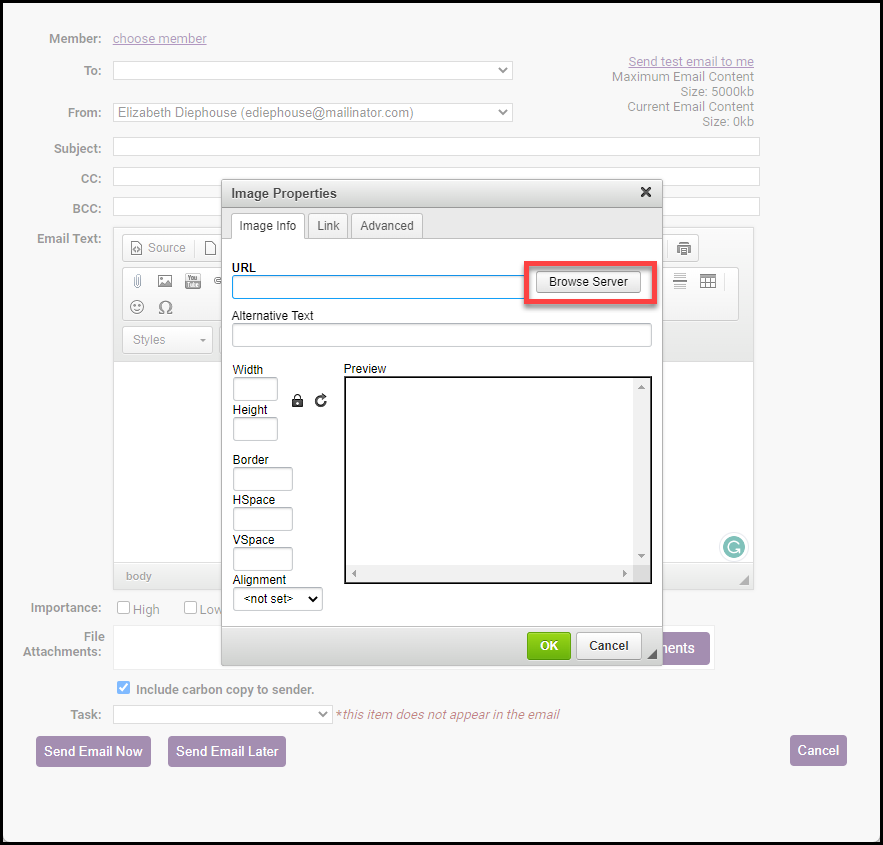 - In the Image Properties window, select Browse Server.