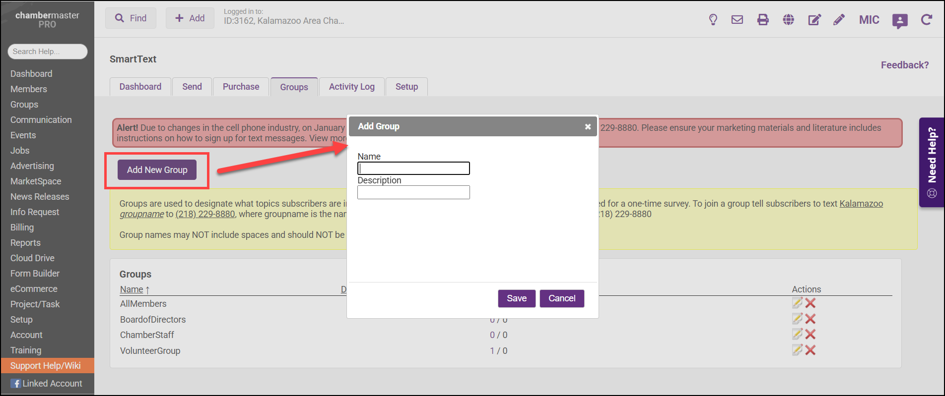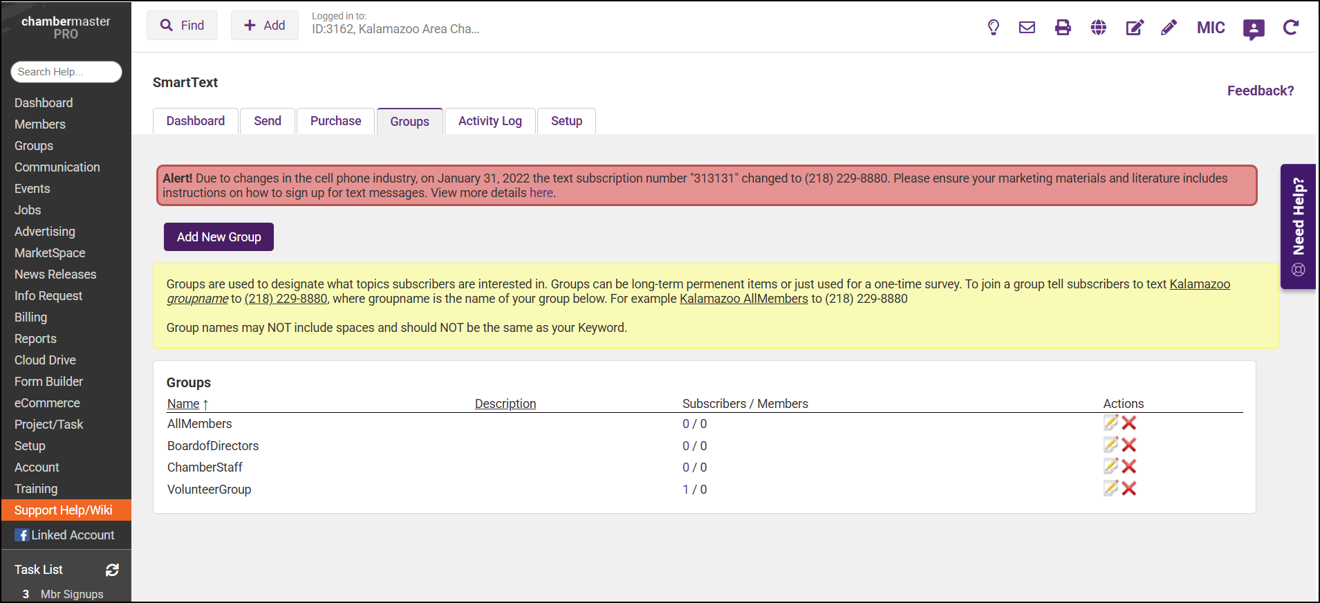 Type the name of the group (board, events, etc.) that will be used by the subscriber in the opt-in subscription text. Note: Group names cannot include spaces.
