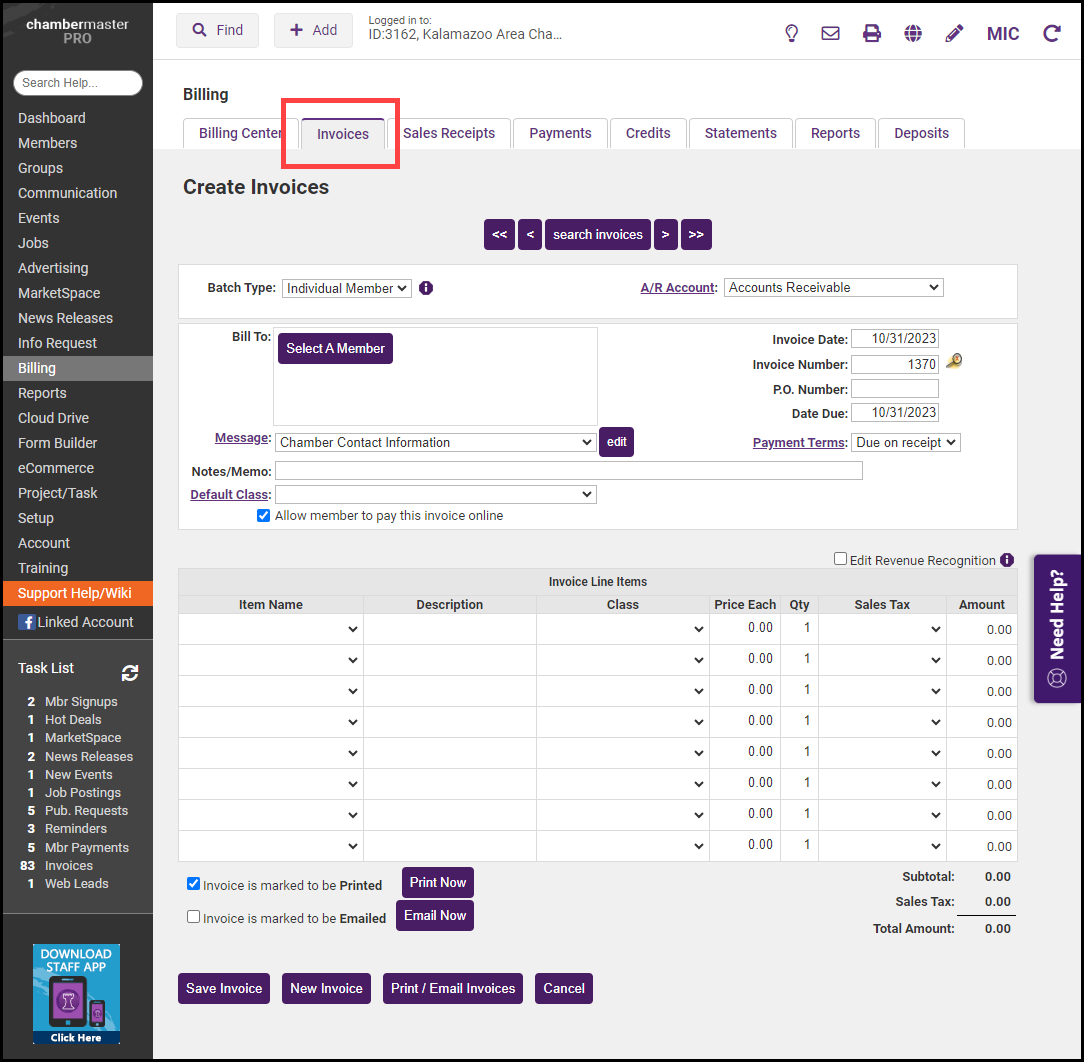 - Click the Invoices tab.