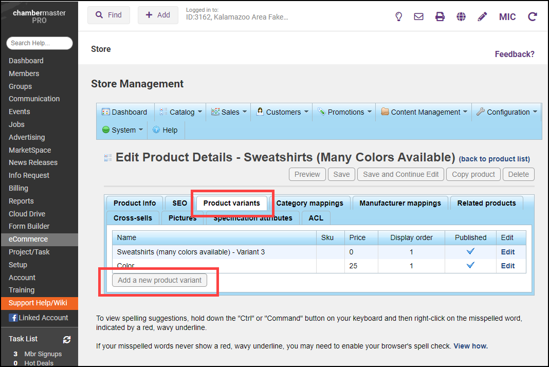- On the Product Variants tab, select Add a new product variant.