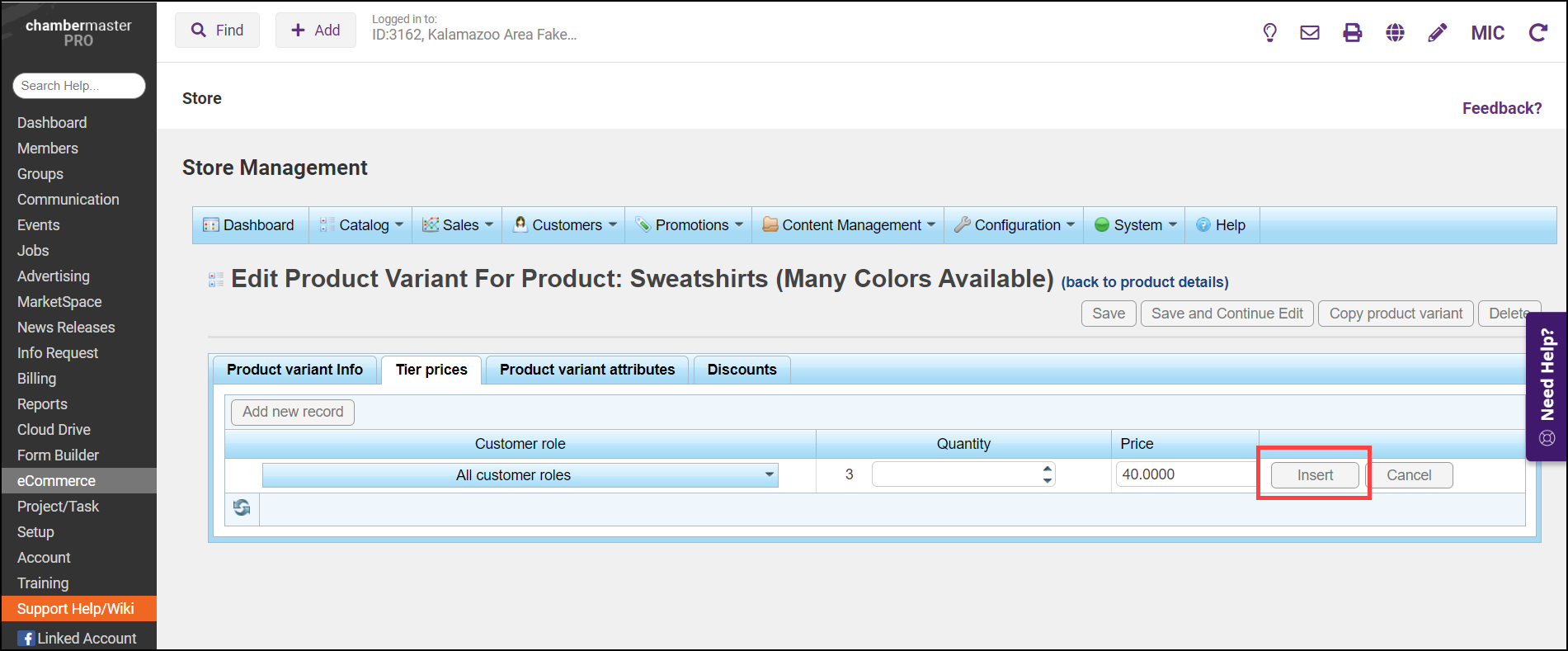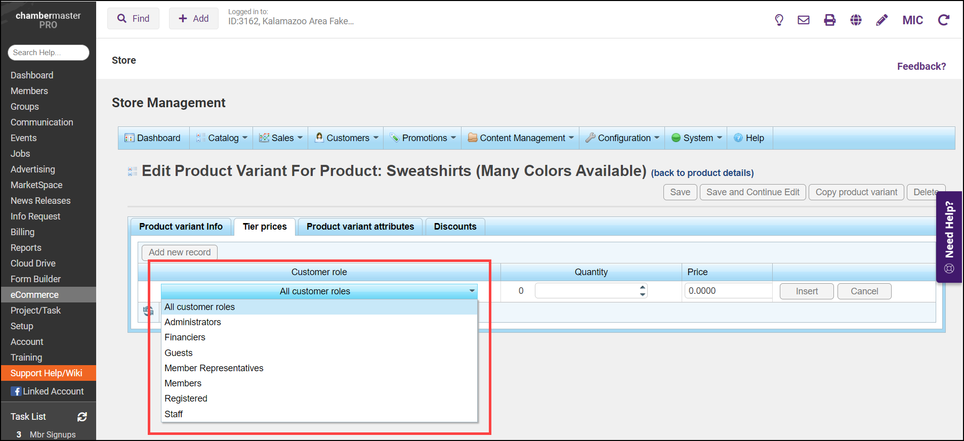- From the Customer role dropdown list, select the customer role based on which the tier price will be defined, ex. all customers, registered, guests.